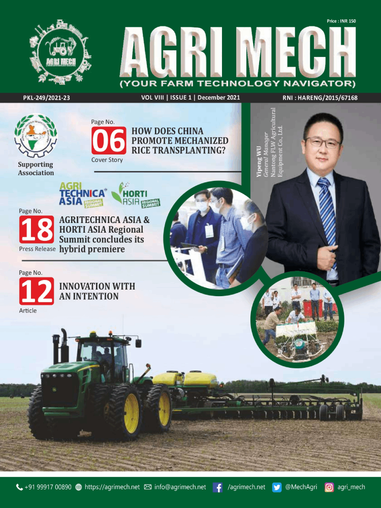 AGRI MECH is worlds’ numero uno magazine on Farm Technologies & allied industries, which is brought out in association with Agricultural Machinery Manufacturers’ Association (AMMA-India).
