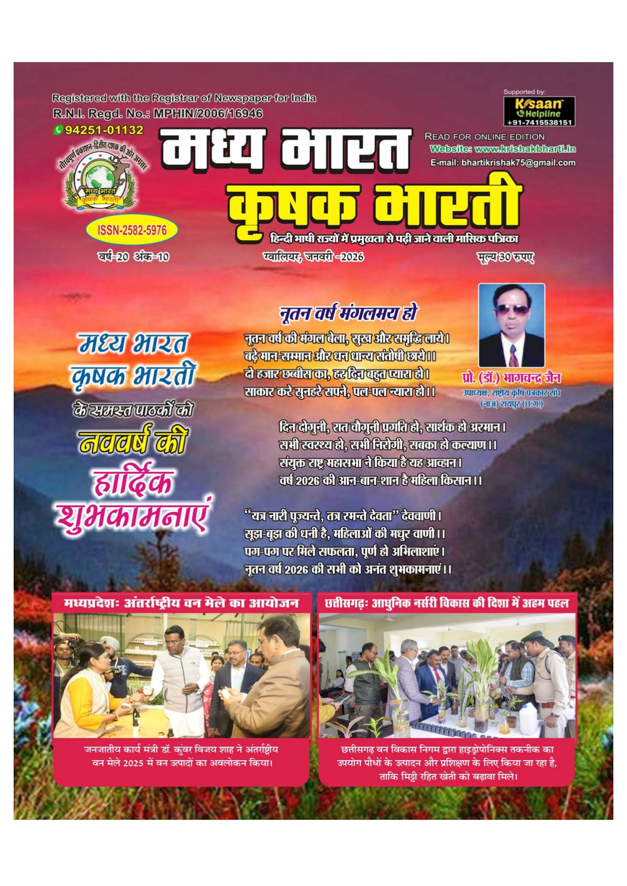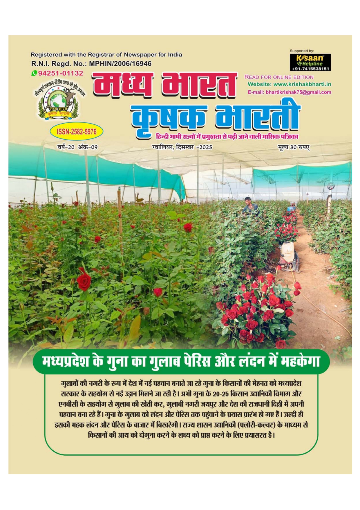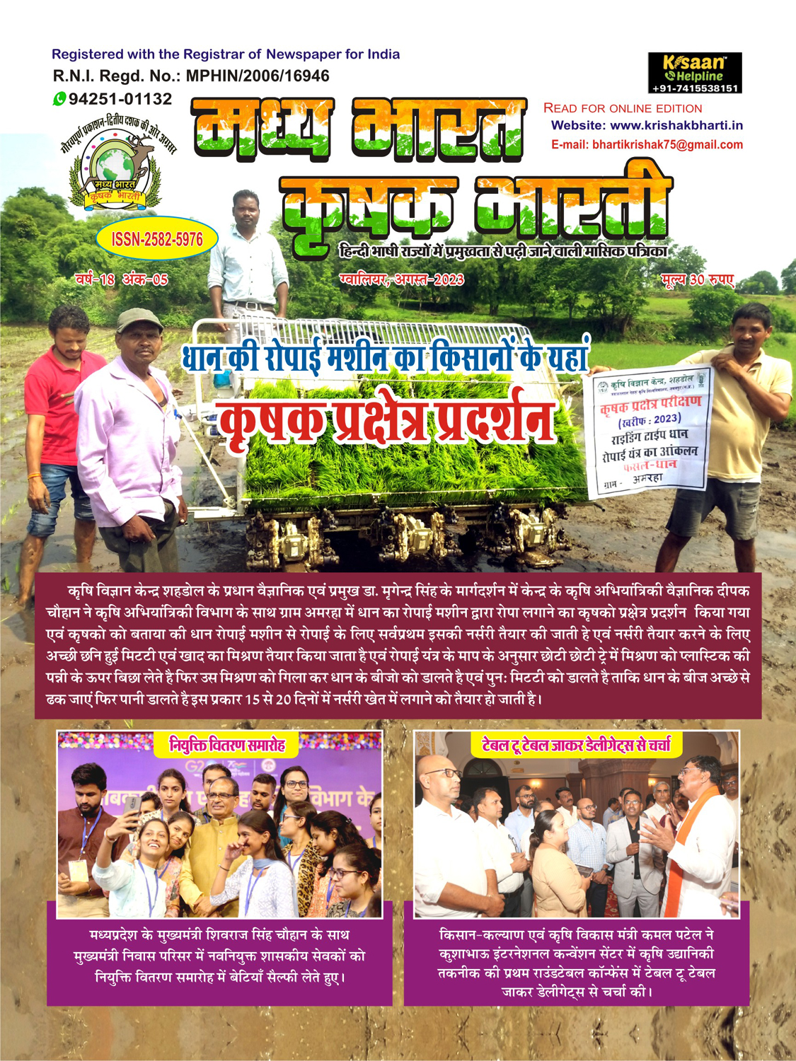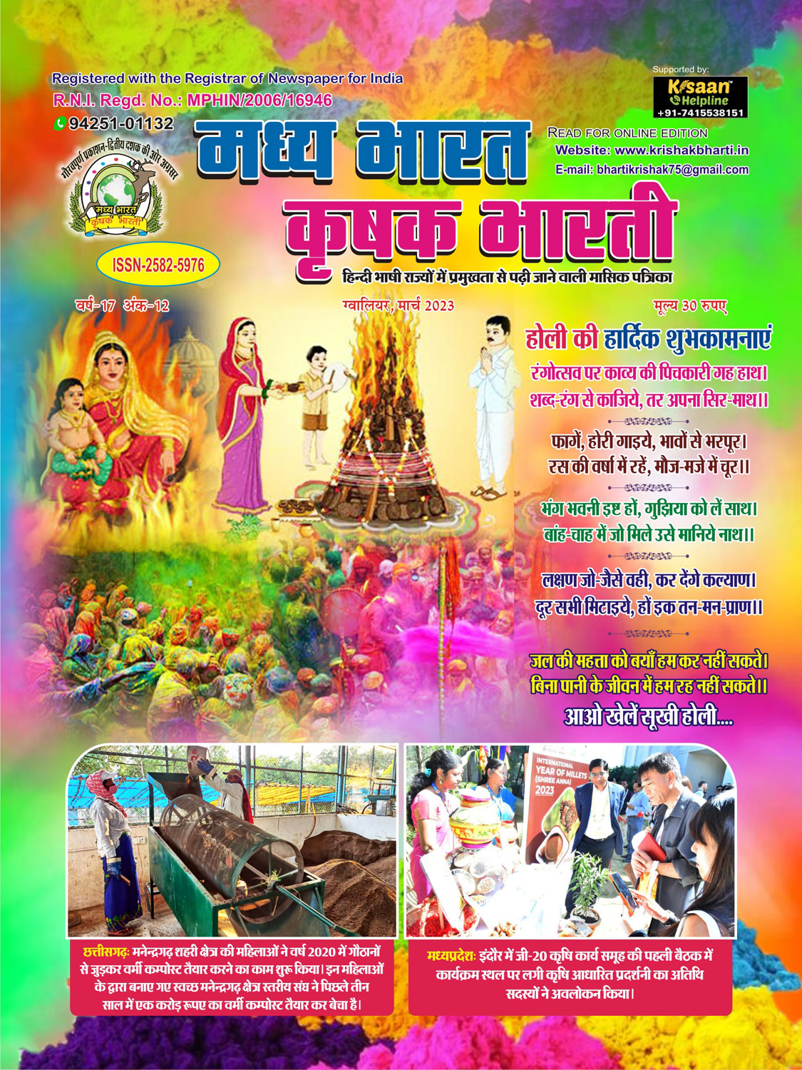 The best agricultural monthly magazine of Hindi speaking states, Madhya Bharat Krishak Bharati, is the only agricultural magazine published from North Madhya Pradesh.