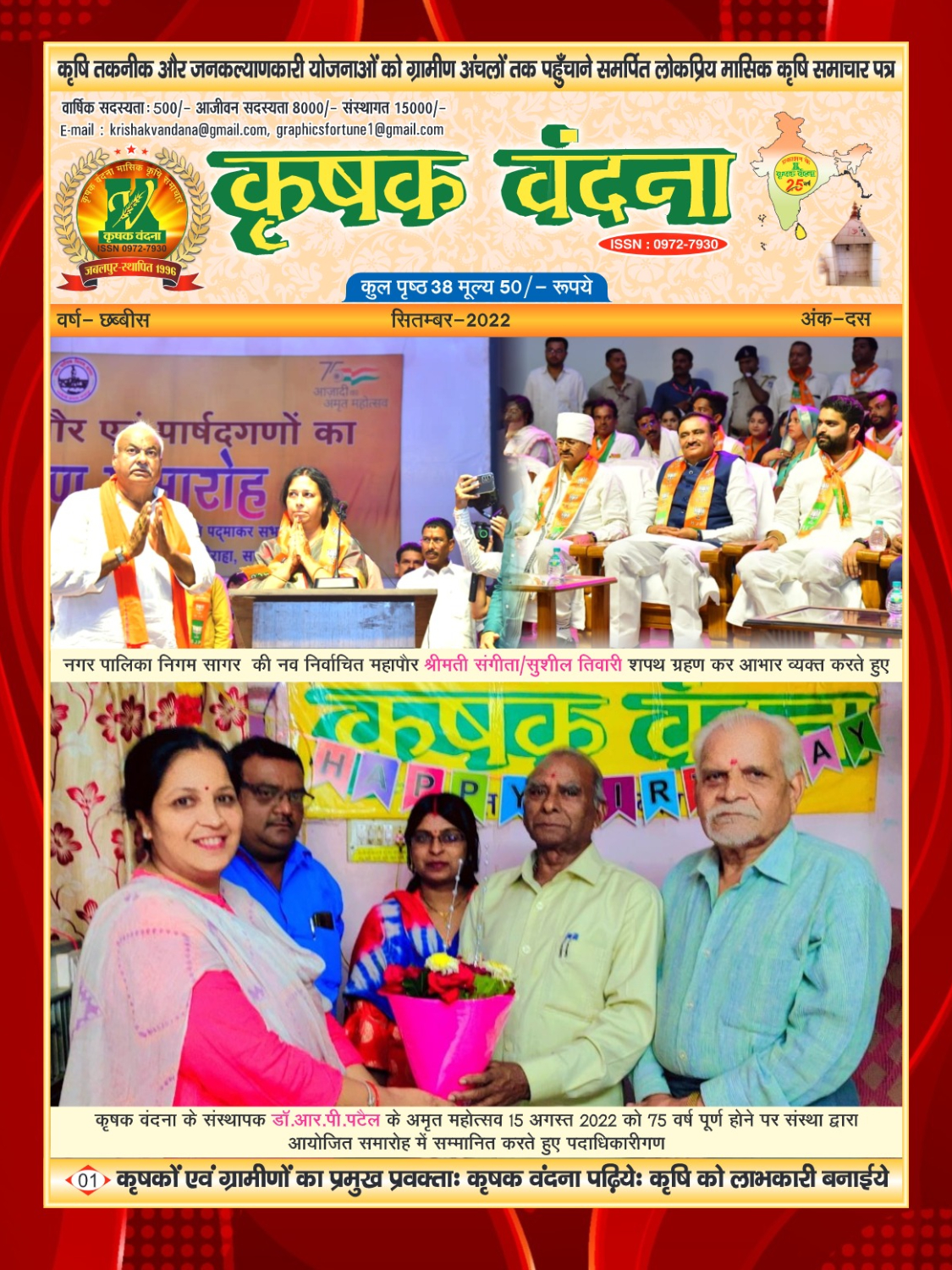 Krishak Vandana is a popular monthly agricultural newspaper dedicated to taking agricultural technology to rural areas, which is published in Jabalpur, Madhya Pradesh.